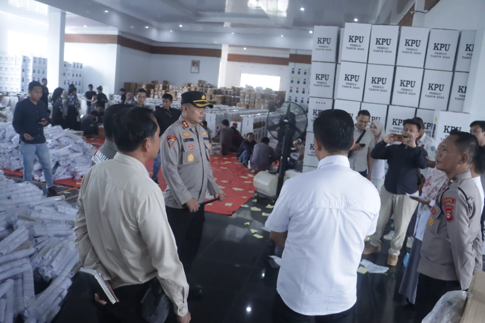 Selain itu pada kesempatan ini Kapolres juga sangat memperhatikan kesehatan dan keamanan petugas yang melakukan packing untuk kelancaran tahapan pemilu tepat waktu.