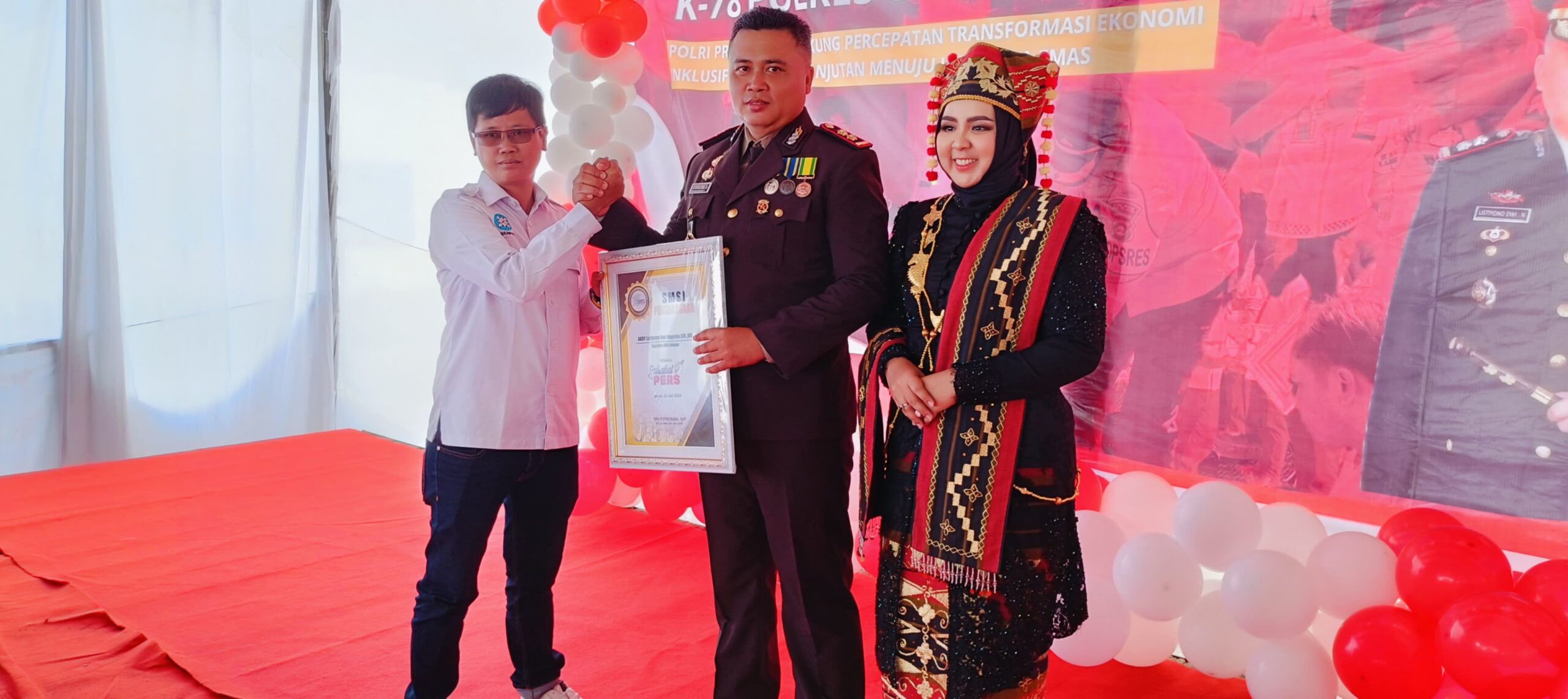 OKU Selatan Sumsel–Dalam rangka memperingati hari ulang tahun (HUT) Bhayangkara Ke-78 yang jatuh pada 1 Juni 2024, Serikat Media Siber Indonesia (SMSI) Kabupaten Ogan Komering Ulu (OKU) Selatan memberikan penghargaan kepada Kapolres OKU Selatan AKBP Listiyono Dwi Nugroho. Senin (01/07/2024).