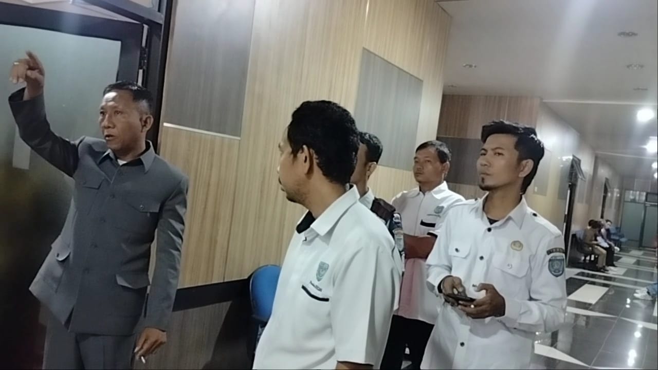 “Kami cuma melaksanakan tugas, sesuai perintah Ketua Komisi I, wartawan dan LSM dilarang masuk ke dalam ruang, mungkin lagi rapat Internal,” kata salah satu penjaga (Sat Pol-PP).