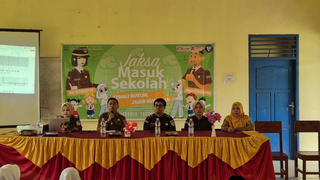 Jaksa masuk sekolah yang dipusatkan di dua tempat ini menghadirkan narasumber seperti di Aula SMA Negeri I Buay Pemaca menghadirkan Kasubsi B Intelejen Kejari OKU Selatan Angga W Putra sebagai narasumber dan didampingi staf.