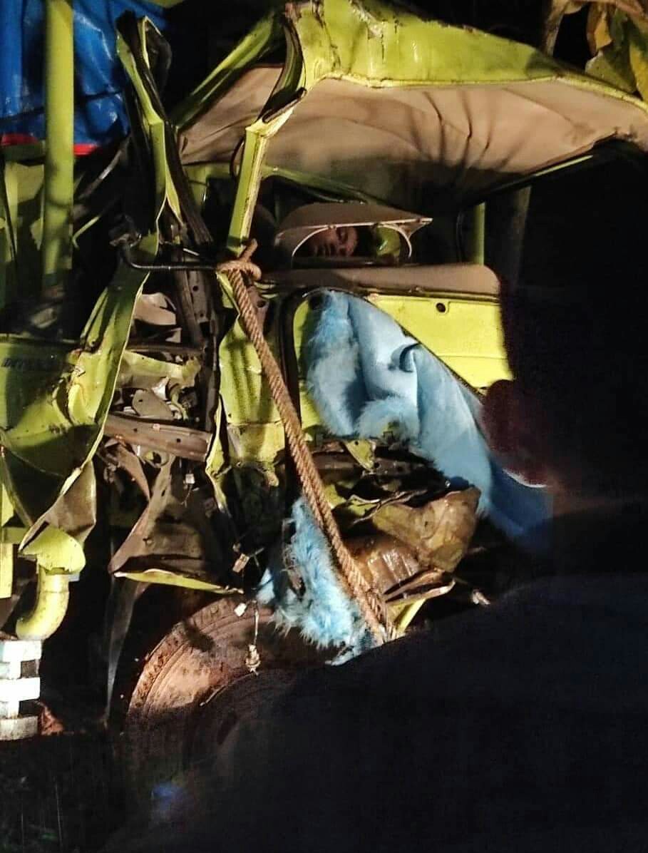 Pada saat yang bersamaan dari arah berlawanan, datang mobil truk Hino BG 8625 UR yang dikemudikan oleh Unang Pratama Saputra dengan tujuan Jambi. karena jarak yang sudah dekat maka kecelakaan pun tak bisa dihindari. Truk Hino menabrak bagian samping belakang sebelah kanan dari Truk Mitsubishi Canter sehinga berputar melintang di tengah jalan.