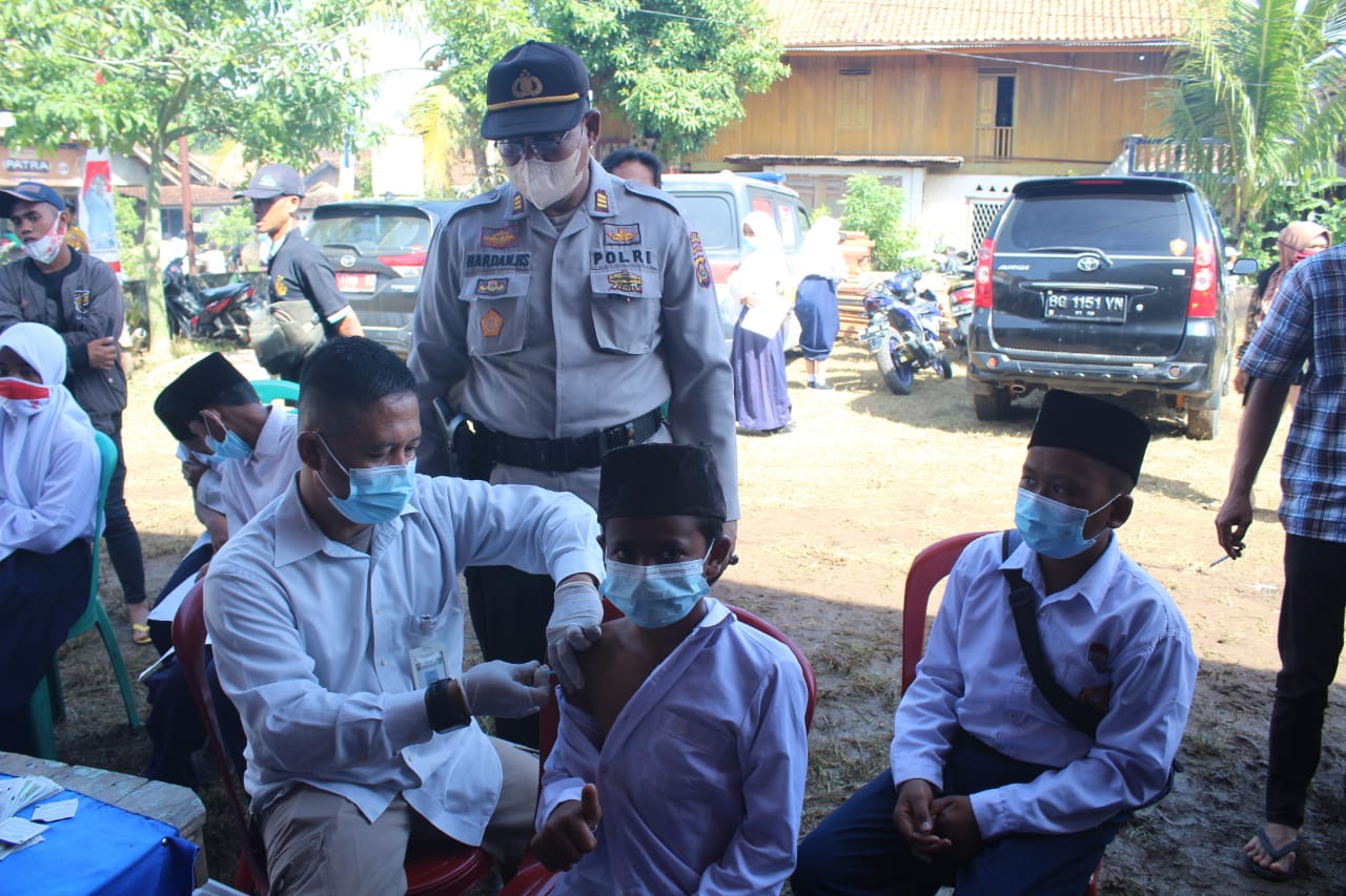 “Hari ini saya dan jajaran turun langsung memonitoring kegiatan keroyok vaksin, untuk memastikan vaksinasi berjalan lancar dan sesuai target yang ditetapkan”, jelas AKBP Indra Arya Yuda saat meninjau kegiatan vaksinasi.