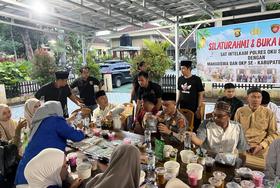 OKU Selatan, Sumsel–Satuan Intelkam Polres OKU Selatan menggelar kegiatan silaturahmi sekaligus buka puasa bersama dengan mahasiswa dan organisasi kepemudaan (OKP) se-Kabupaten OKU Selatan, Kegiatan tersebut berlangsung di Masjid Mukhlisin Al-Amin Polres OKU Selatan. Jumat (06/03/2026).