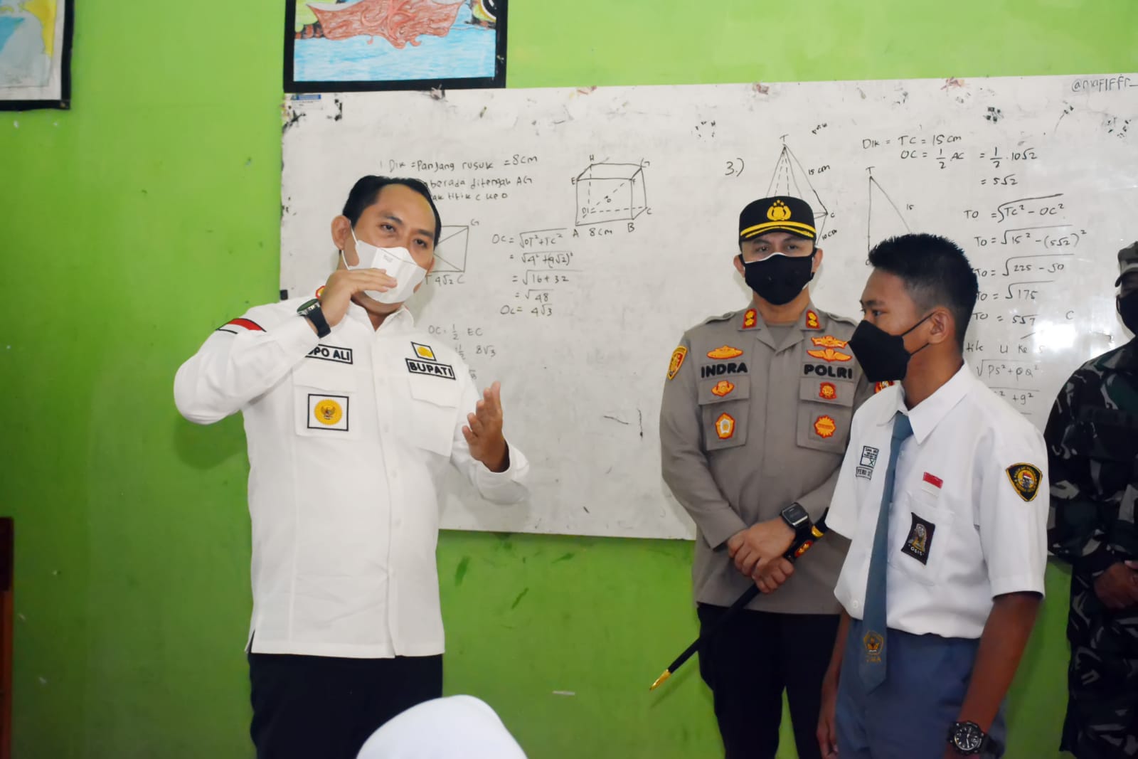 Di sela kegiatannya melakukan monitoring pelaksanaan PTM, Bupati Popo Ali mengingatkan agar siswa senantiasa disiplin menerapkan protokol kesehatan, baik selama di sekolah maupun setelah pulang dari sekolah agar terhindar dari penularan virus Corona.