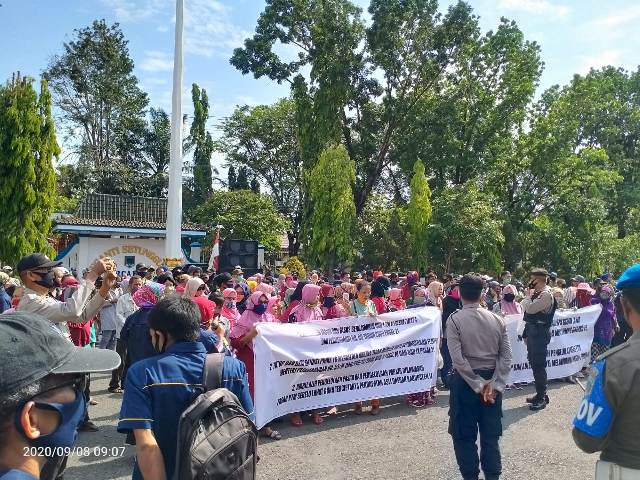 Ratusan para Pedagang Pasar Tradisional Moderen Serelo (PPTMS) Kabupaten Lahat, Sumatera Selatan, kembali mengadakan aksi damai ke depan Kantor Bupati Lahat terkait permasalahan yang ada di Pasar Tradisional Modern Serelo Lahat. Selasa (08/09/2020).