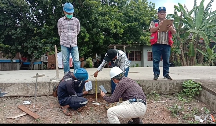 Terlihat langsung KPK dan tim Ahli Politeknik Unsri didampingi pengawas lapangan proyek Kotfir sedang mendampingi memeriksa proyek Peningkatan jalan ruas pelabuhan dalam indralaya lanjutan.