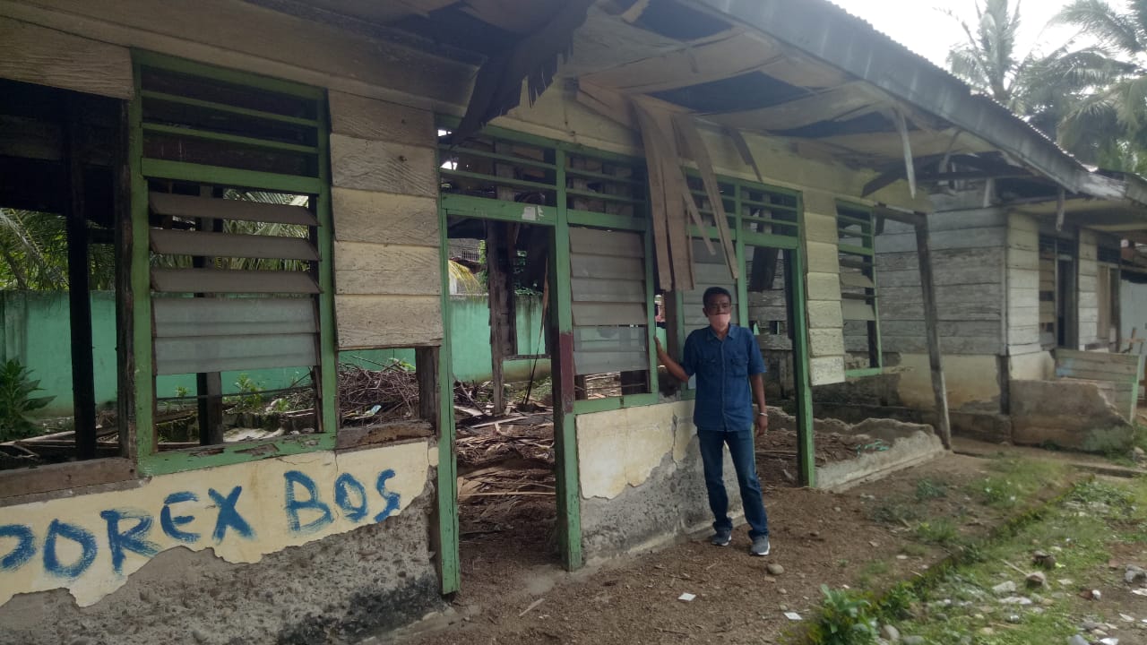 “Mana ada bangunan baru di sekolah ini. Atap gedung sekolah itu saja kalau tidak saya yang perbaiki atap kantor itu mungkin sengnya sudah beterbangan ditiup angin. Itu saya perbaiki, tidak ada upah sepeser pun. Kemudian pagar sekolahnya pun saya perbaiki hingga hampir bekapakan dengan mantan kades. Sebab saya buat pagar dekat kebun karetnya,” ujar pengajar di SDN itu berinisial KM, Minggu (8/11/20).