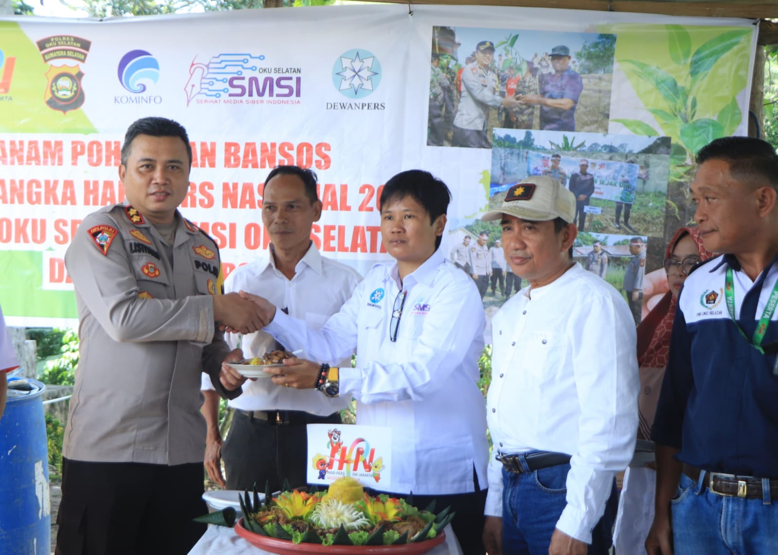 Adapun Kapolres OKU Selatan, AKBP Listiyono Dwi Nugroho, dalam sambutannya mengungkapkan terima kasih atas terselenggaranya kegiatan HPN yang berbarengan dengan kegiatan Jum’at curhat Polres OKU Selatan yang dilanjut dengan penanaman pohon buah dan kayu.