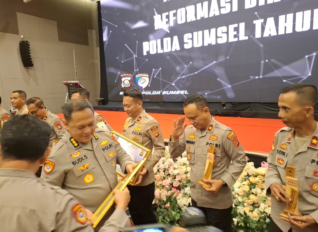 Kegiatan yang dipimpin Karorena Polda Sumsel Kombes Pol Budi Surianto tersebut menjadi momentum apresiasi terhadap satuan kerja yang dinilai mampu menampilkan kinerja optimal, berinovasi, serta menunjukkan komitmen tinggi dalam implementasi reformasi birokrasi secara berkesinambungan.