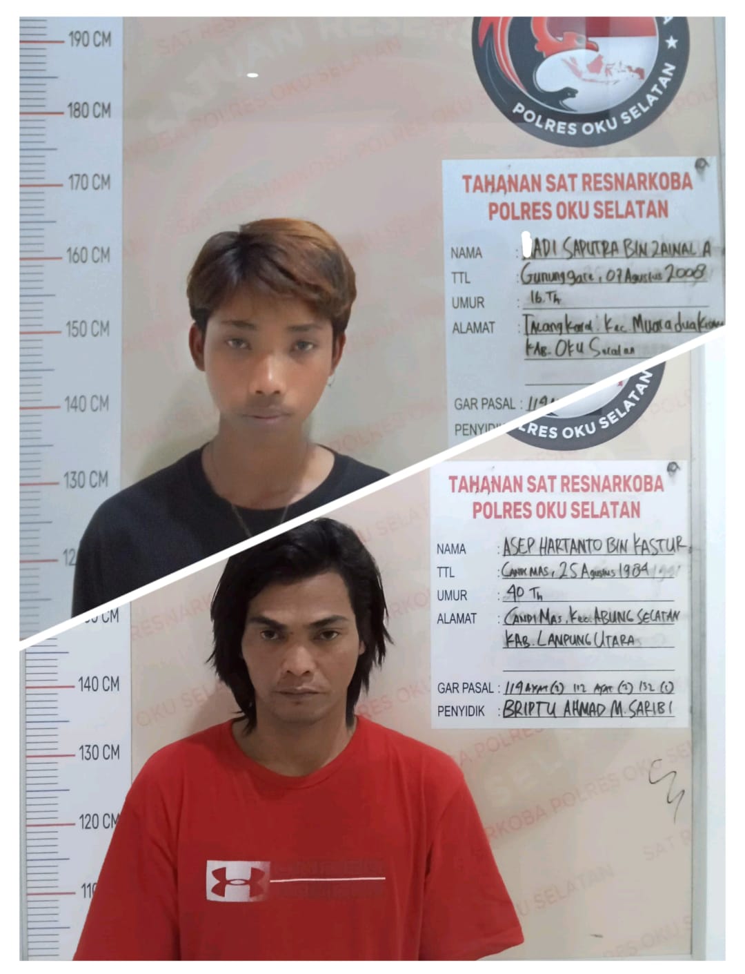 Kapolres OKU Selatan AKBP M Khalid Zulkarnain melalui Kasat Narkoba AKP Alimin menjelaskan keduanya ditangkap di jalan raya Desa Peninggiran, kecamatan tiga dihaji, Kabupaten OKU Selatan pada Rabu (12/03/2025) sekitar pukul 10:00 WIB.