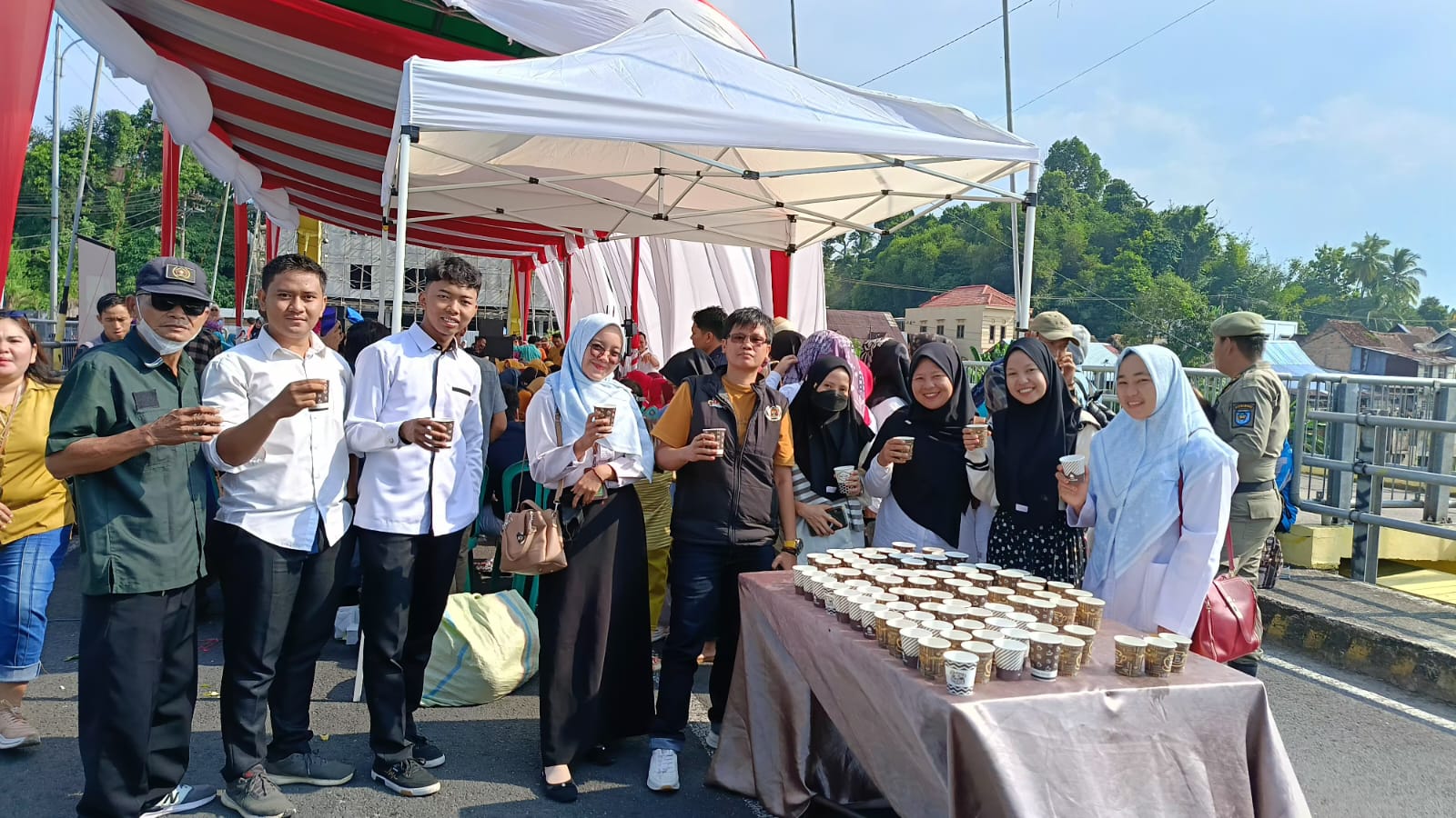 OKU Selatan Sumsel–Sukseskan Program Kamar Dagang dan Industri (Kadin) Provinsi Sumsel dalam rangka pecahkan rekor Muri, Pemda OKU Selatan gelar gerakan minum kopi serentak di pinggir sungai.