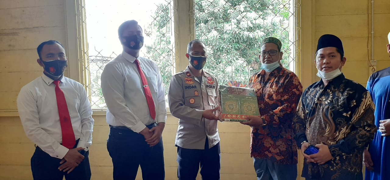Teks Foto: Wakapolres Empat Lawang. Kompol. Indarmawan didamping kasatNarkoba AKP.Wanda Dhira Bernard Saat memberikan bantuan kepihak pengurus rumah Tahfizs Qur’an dalam acara Baksos Polres Empat Lawang.Foto Bento