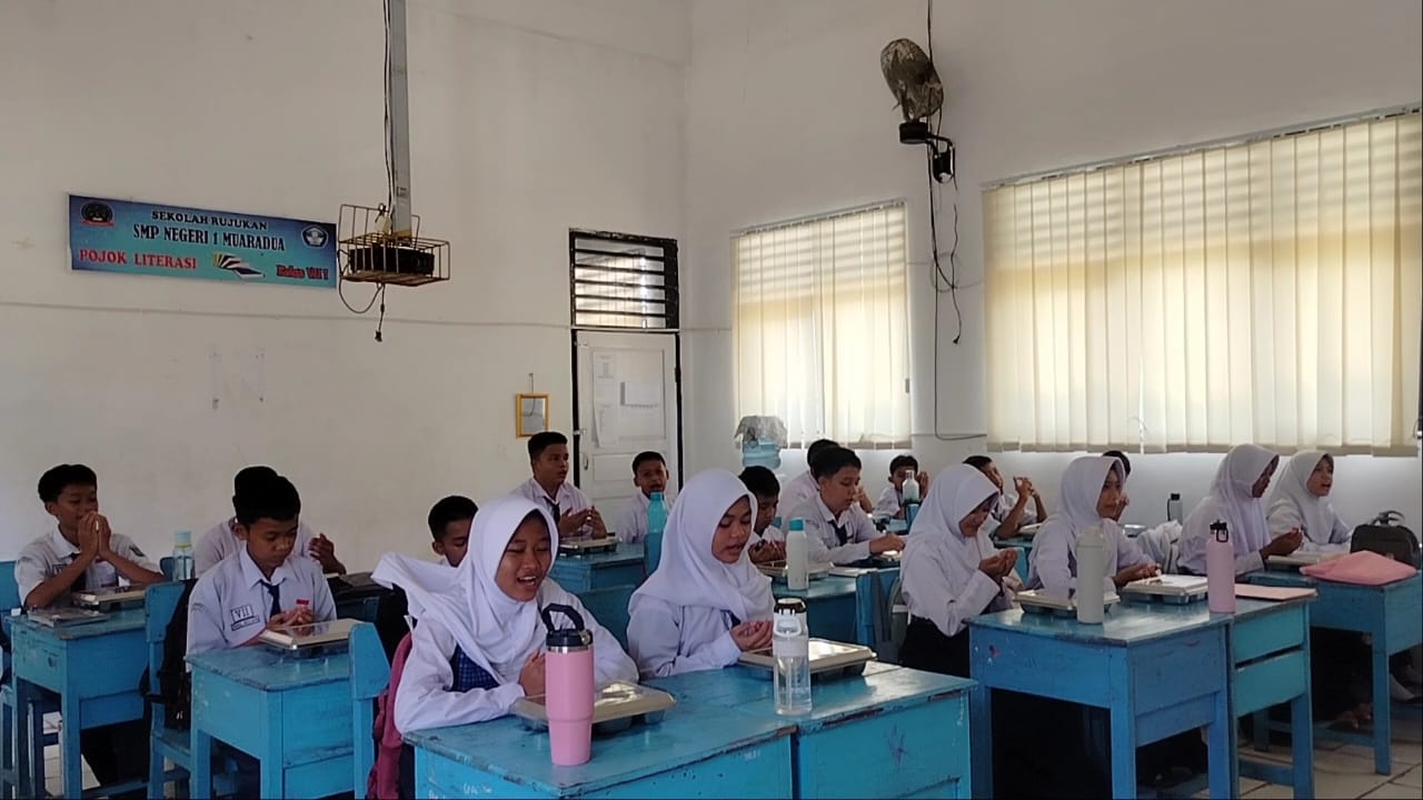 Kepala SMP Negeri 01 Muaradua, Noni Apriani menyampaikan, muridnya mulai menerima MBG perdana pada Senin 16 September 2025.