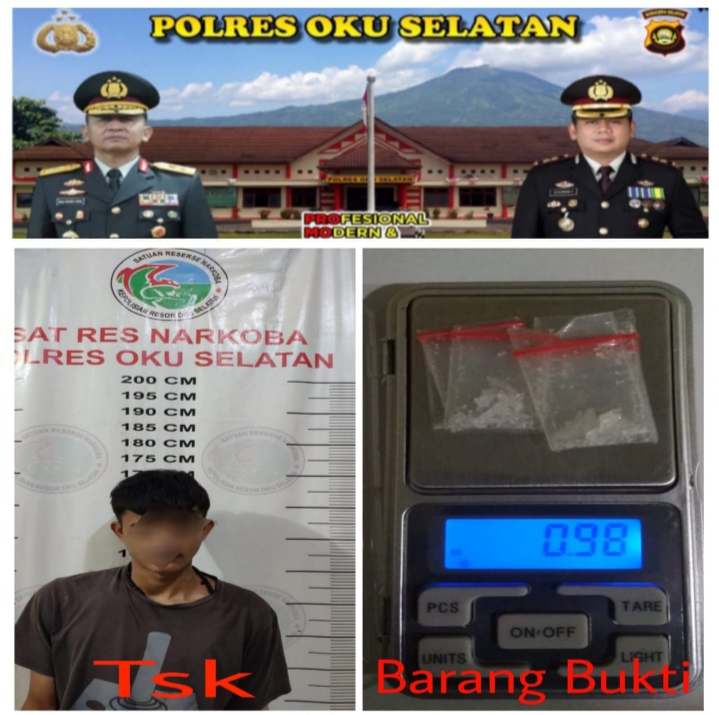 MIM (22) terduga pengedar Narkoba jenis sabu yang beralamatkan di Desa Bandar Alam Baru, Kecamatan Muaradua Kisam, berhasil ditangkap di sebuah rumah yang beralamatkan di Desa Penyandingan Kecamatan Muaradua Kisam, kabupaten setempat.
