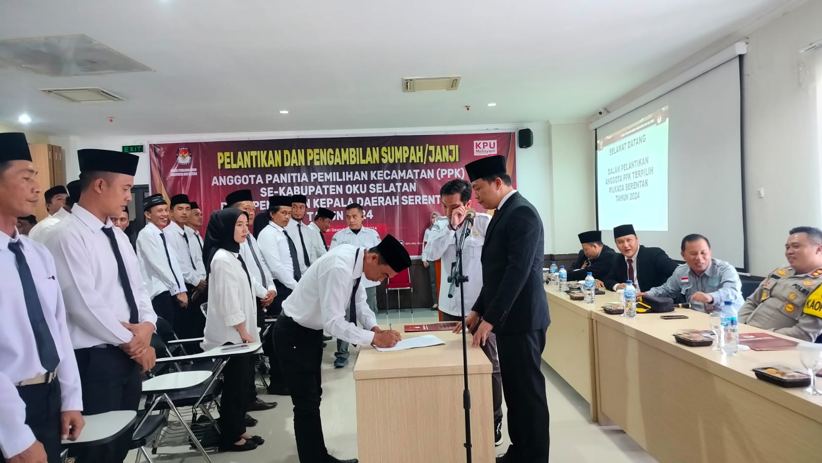 OKU Selatan Sumsel–Komisi Pemilihan Umum (KPU) Kabupaten OKU Selatan telah resmi melantik 95 anggota Panitia Pemilihan Kecamatan (PPK) di Graha Serasan Seandanan. Kamis (16/5/2024).