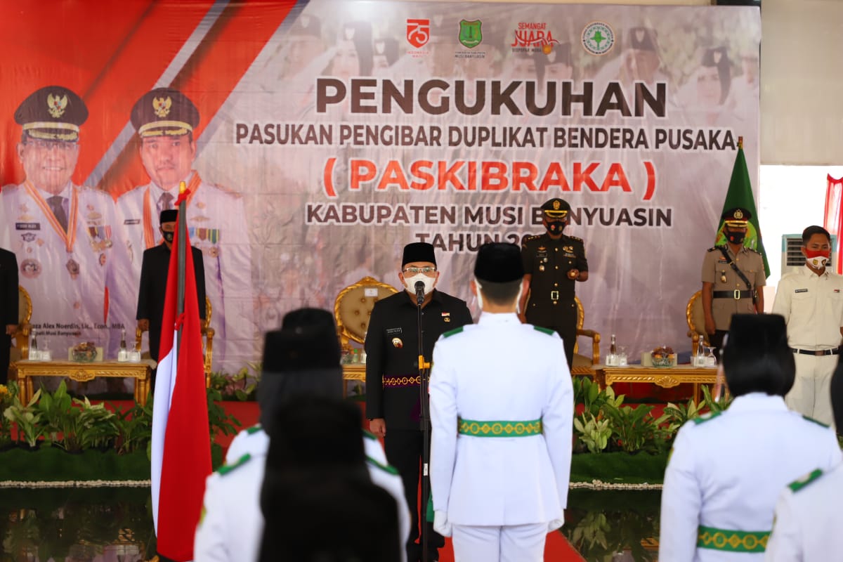 Bupati Muba Dr H Dodi Reza Alex Noerdin mengatakan meskipun di tengah pandemi Covid-19, Perayaan Upacara Peringatan HUT Proklamasi Kemerdekaan Republik Indonesia tetap dilaksanakan meski tidak seperti biasa. Dalam suasana seperti ini, lanjut Dodi diharapkan menjadi pemicu semangat bagi anggota Paskibraka Muba untuk tampil menjadi duta dalam memutuskan mata rantai penularan Covid-19 di Kabupaten Muba. “Pada hari ini saya mengukuhkan saudara-saudara, sebagai pasukan pengibar bendera Merah Putih di Kabupaten Musi Banyuasin, yang akan bertugas nanti pada peringatan HUT Kemerdekaan RI tanggal 17 Agustus 2020. Saya pesankan jaga kesehatan, jangan lupa berdoa dan berlatih dengan baik menjelang pengibaran bendera HUT RI ke 75,”ungkapnya.