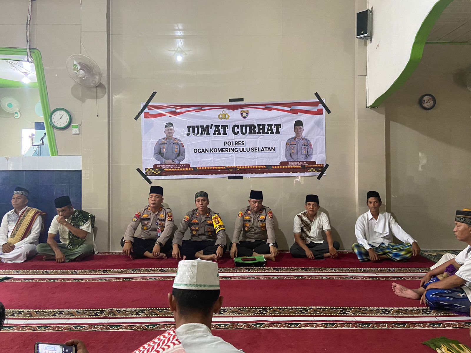 OKU Selatan Sumsel–Kepolisian Resor (Polres) Ogan Komering Ulu (OKU) Selatan Polda Sumsel rutin gelar curahan Hati (Curhat) yang dikemas dalam program Jum’at curhat. Kali ini Jum’at Curhat berlangsung di Masjid Al-Hidayah Desa Karet Jaya Kecamatan Buay Pemaca bersama sejumlah warga dan tokoh masyarakat yang ada di kecamatan setempat.