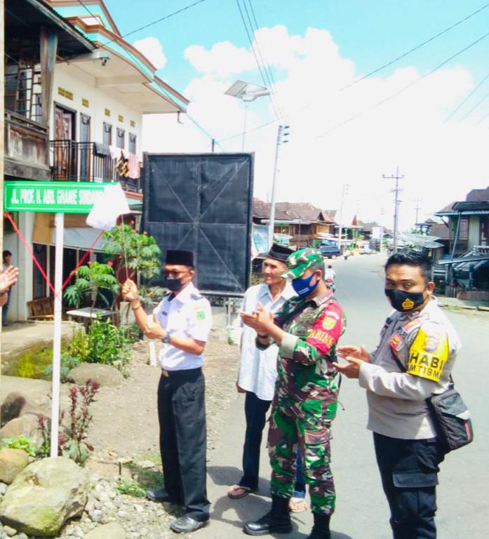 Teks foto: Resmikan: Terlihat Camat Muara Pinang, Sapardinajoly saat meresmikan nama sosok tokoh Prof.Abd Ghanie Sindang.MA. sebagai nama jalan lintas desa Muara Timbuk, Kecamatan Muara Pinang, Kabupaten Empat Lawang. Istimewa.