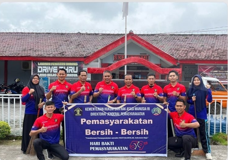 OKU Selatan Sumsel–Sambut Bulan Suci Ramadhan dan Semarakkan Hari Bhakti Pemasyarakatan ke-59 jajaran pejabat struktural eselon V dan IV bersama Staf dan CPNS lembaga Pemasyarakatan Kelas IIB Muaradua, kabupaten OKU Selatan melaksanakan kegiatan bersih-bersih lingkungan Lapas. Jumat (17/03/2023)