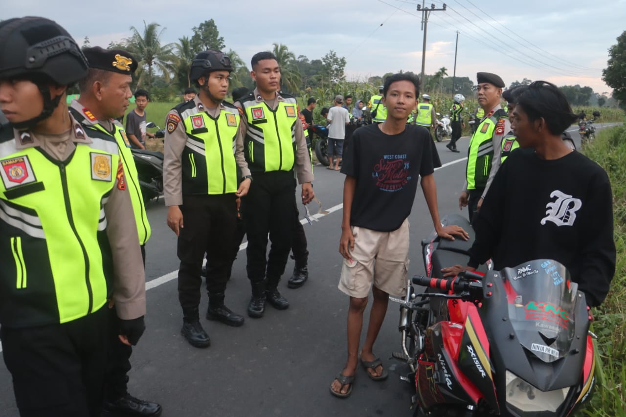 OKU Selatan Sumsel–Kapolres Polres OKU Selatan bersama PJU dan Polsek Simpang Martapura membubarkan balap liar di jalan raya Muaradua-Simpang dan jalan raya Desa Sinar Mulyo, Kecamatan Simpang. Minggu (17/03/2024)