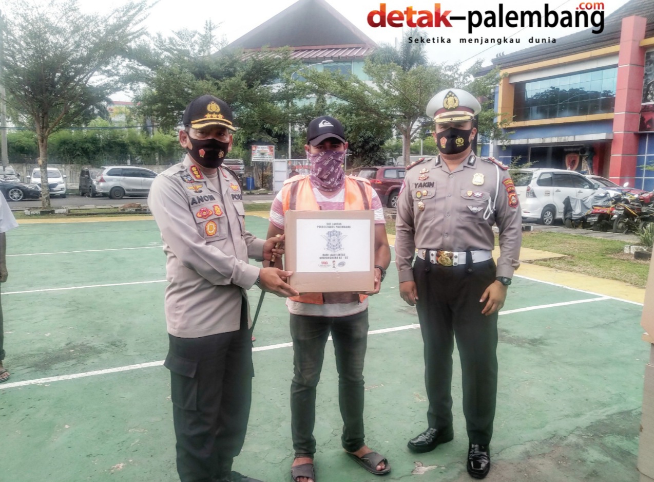 Detak-Palembang.com PALEMBANG- Dalam rangka menyambut Hari Lalu Lintas Bhayangkara ke-65, Satuan Lalu Lintas Polrestabes Palembang menyambutnya dengan cara yang sangat humanis berbagai kasih dengan masyarakat.