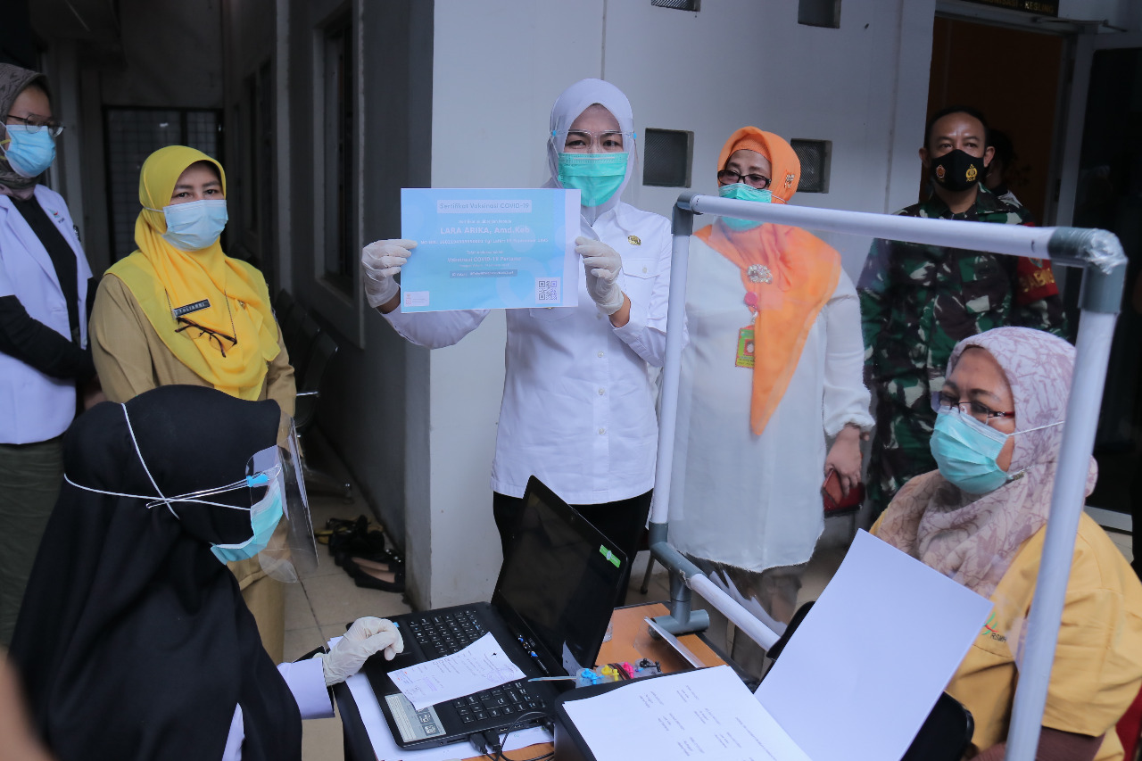 SUMSEL,SIBERINDO.CO- Wakil Walikota Palembang, Fitrianti Agustinda (Finda) Tinjau langsung proses vaksinasi yang dilakukan terhadap Tenaga Medis (Nakes), salah satunya di Puskesmas Merdeka di Jalan Merdeka kota Palembang, Senin 18 Januari 2021.