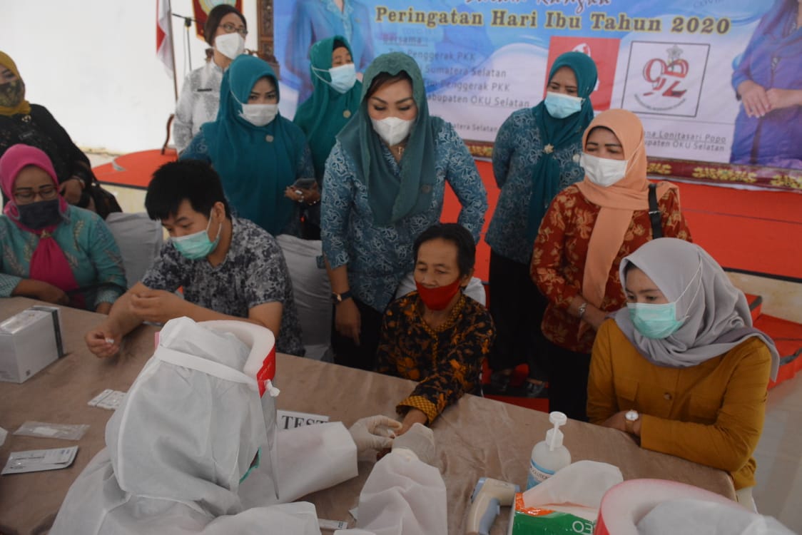 OKU Selatan Sumsel, sumsel.siberindo.co–Dalam rangka Peringatan Hari Ibu Tahun 2020 TP PKK Kabupaten Ogan Komering Ulu (OKU Selatan) gelar Rapid Test Gratis untuk kaum Perempuan, kegiatan berlangsung di Pendopo Kabupaten OKU Selatan. Jum’at (18-12-2020)