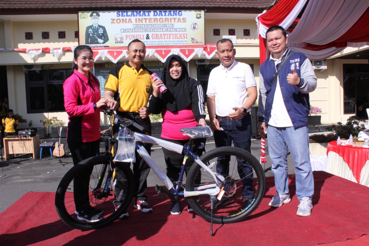 Menurut Kapolres, antusiasme masyarakat yang hadir sangat tinggi. Mereka juga dapat kupon masing-masing untuk mendapatkan hadiah yang sudah disediakan, seperti sepeda mini untuk anak-anak hingga sepeda untuk orang dewasa.