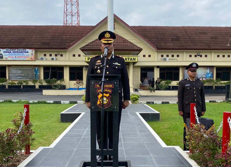 OKU Selatan Sumsel–Peringatan Hari Bela Negara ke 75 tahun 2023 Polres OKU Selatan menggelar upacara bersama seluruh personilnya di Lapangan Apel Polres. Selasa (19/12/2023).