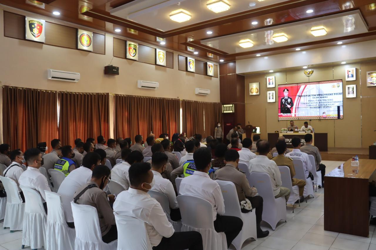 “Penelitian dari tim Puslitbang Polri ini dalam rangka mengetahui tingkat kepercayaan masyarakat terhadap kinerja Polri khususnya di wilayah Polres OKU Selatan”, jelas Kapolres