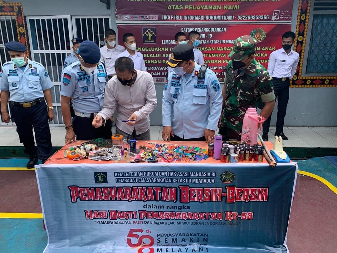 razia gabungan ini di lakukan sebagai bentuk rangkaian peringatan hari Bhakti Pemasyarakatan Ke-58 dengan tema “Pemasyarakatan Bersih-Bersih”.