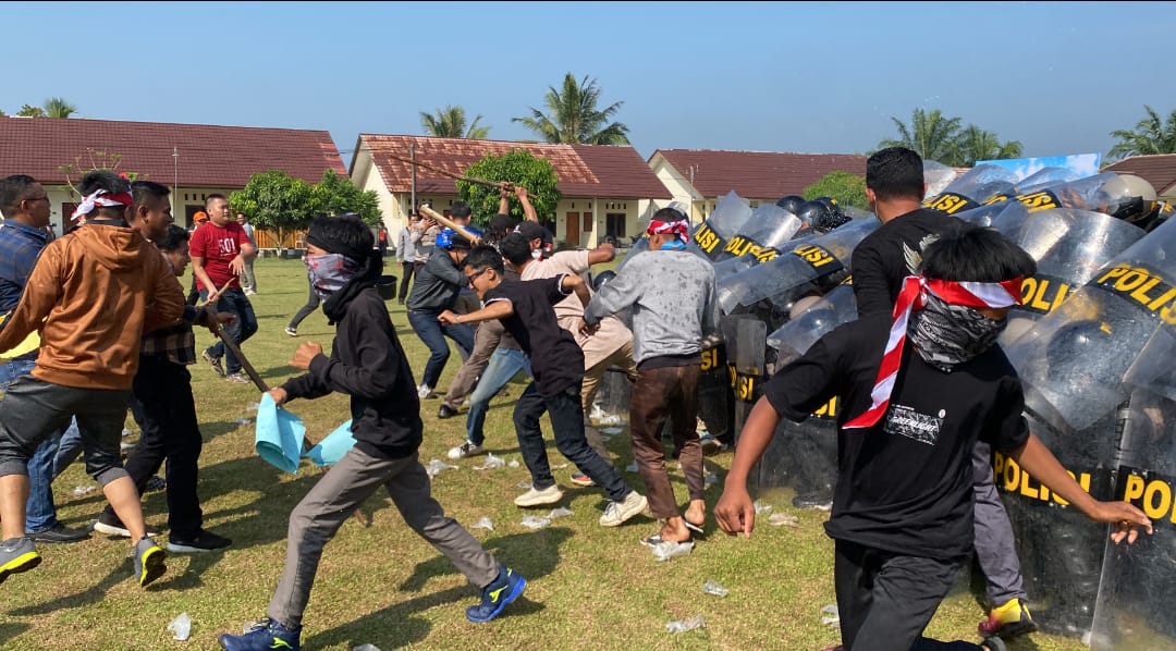Dikatakan Kapolres, pada kegiatan tersebut simulasi dilakukan dalam kondisi terburuk yakni terjadi chaos antara pendemo dan anggota Polres OKU Selatan yang melakukan pengamanan di depan KPU.