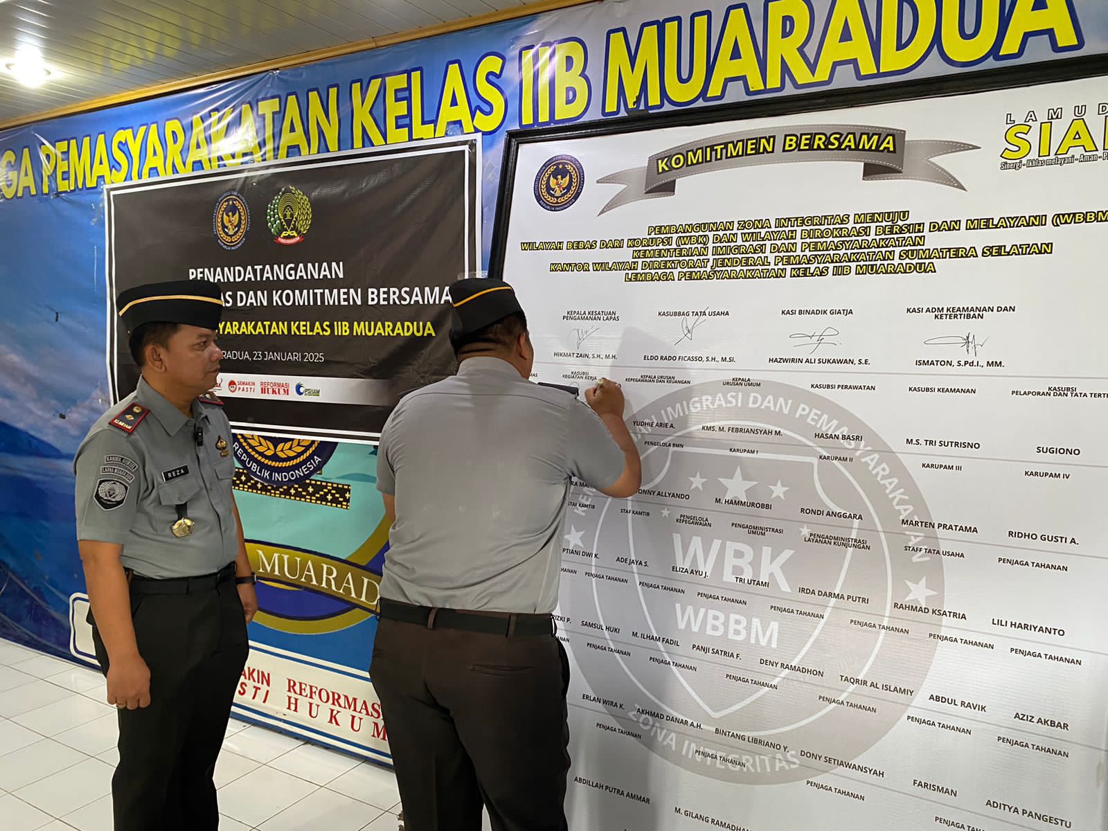 OKU Selatan Sumsel–Lembaga Pemasyarakatan (Lapas) Kelas IIB Muaradua melaksanakan Pencanangan Pakta Integritas dan Penandatanganan Perjanjian Kinerja tahun 2025 di Aula Lapas setempat. Kamis (23/01/2025).