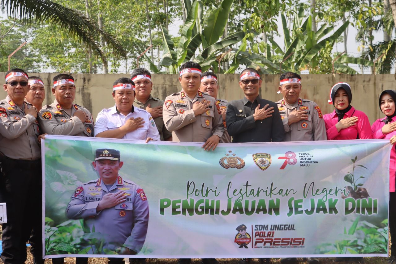 Selain itu, penanaman pohon dilakukan sebagai wujud kepedulian Polri dalam menjaga keberlangsungan kehidupan, sekaligus dalam rangka memperingati Hari Kemerdekaan Republik Indonesia ke-78 tahun 2023.