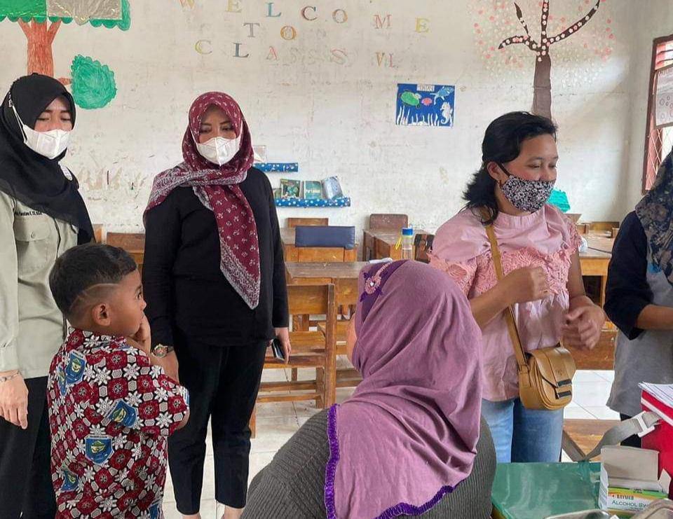 OKU Selatan Sumsel–Kepala Dinas Kesehatan kabupaten Ogan Komering Ulu (OKU) Selatan dr Meri Astuti.,MM meninjau secara langsung pelaksanaan vaksinasi Covid-19 pada anak usia 6-11 tahun dibeberapa lokasi pelaksanaan vaksinasi.