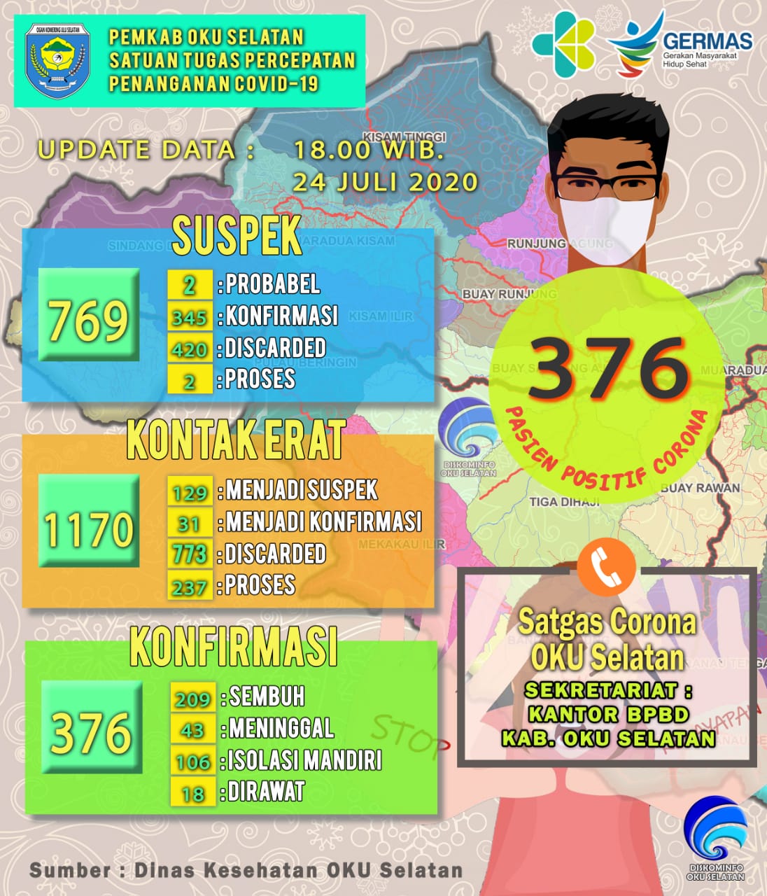 OKU Selatan, sumsel.siberindo.co–Satgas Covid-19 di Kabupaten Ogan Komering Ulu (OKU) Selatan, Provinsi Sumatera Selatan, mencatat kasus positif Covid-19 meningkat mencapai 376 kasus selama pemberlakuan pembatasan kegiatan masyarakat (PPKM) yang diterapkan pemerintah sejak Kamis 22 Juli 2021.
