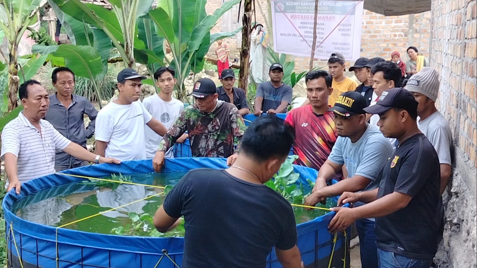 OKU Selatan Sumsel–Sukseskan program ketahanan pangan tingkat desa Pemerintah Desa (Pemdes) Pelangki, Kecamatan Muaradua, Kabupaten Ogan Komering Ulu (OKU) Selatan tabur ribuan bibit ikan lele untuk budidaya ikan.
