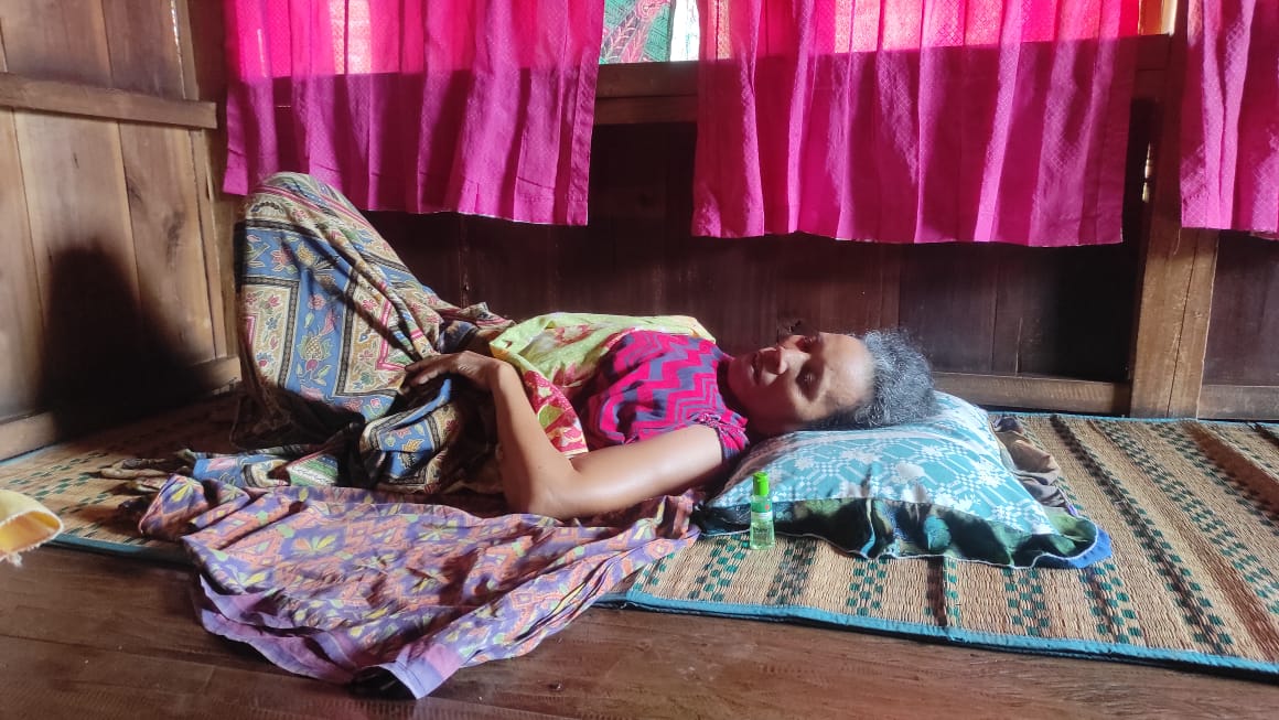 “Baru-baru ini saya sempat berobat namun terpaksa dihentikan, saya tak bisa menanggung biaya pengobatan, sehingga terpaksa hanya berbaring menahan rasa sakit,” ucapnya lirih