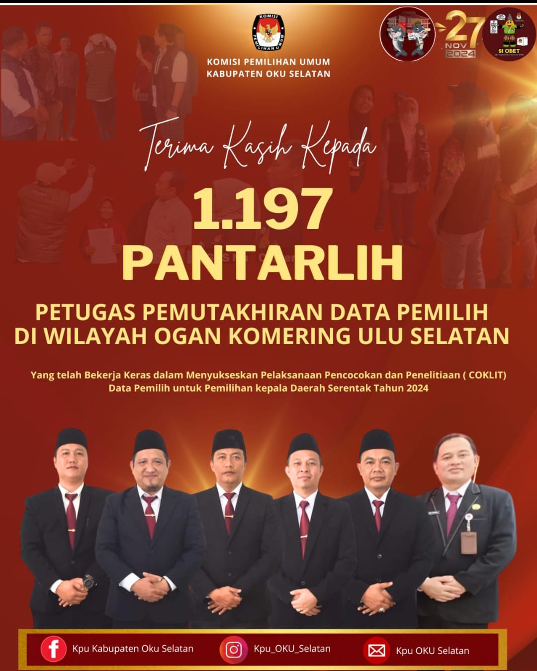 “Proses coklit yang dilakukan oleh 1.197 Pantarlih di OKU Selatan per hari Rabu 25 Juli sudah selesai 100 persen,” kata Ketua Divisi Data dan Informasi KPU OKU Selatan Yuristian Ramadoni