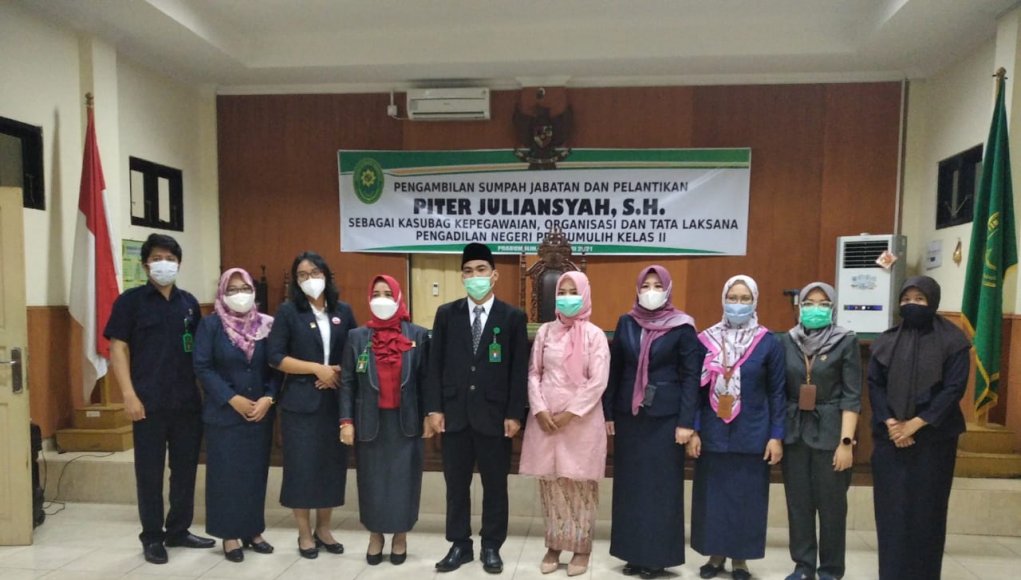 Pengambilan sumpah jabatan dan pelantikan Piter Juliansyah, SH. Sebagai Keportala, dilaksanakan diruang sidang Pengadilan Negeri Prabumulih kelas 2 Prabumulih, Jumat (26/02/2021).