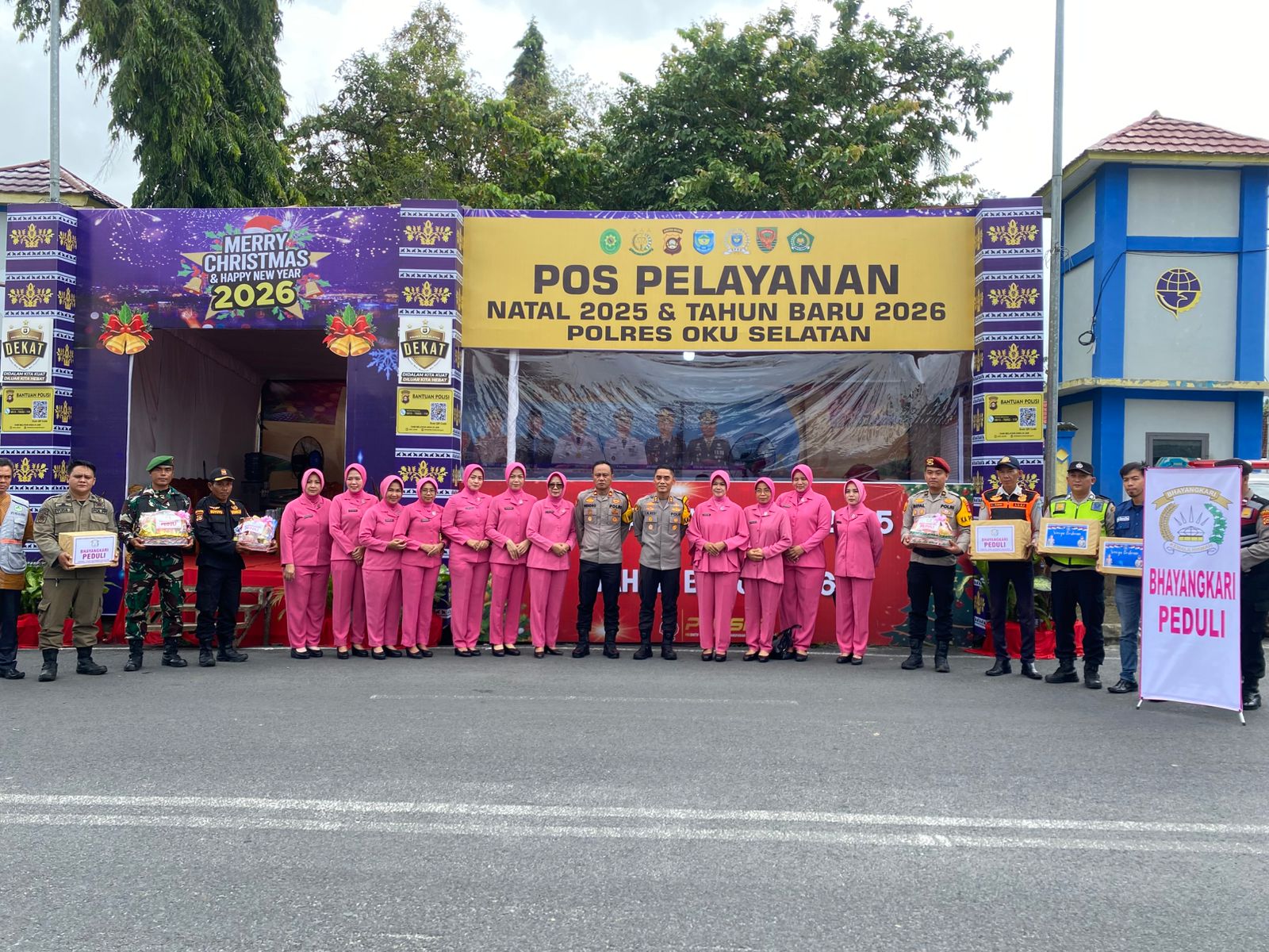 OKU Selatan Sumsel–Polres OKU Selatan bersama Pengurus Cabang Bhayangkari OKU Selatan melaksanakan kegiatan Bhayangkari Peduli dengan menyambangi sejumlah Pos Pengamanan (Pospam) Operasi Lilin Musi 2025, Jumat (26/12/2025).