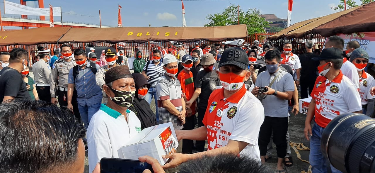 PALEMBANG, SIBERINDO.CO- Kapolda Sumsel Irjen Pol Prof Eko Indra Heri S hadiri Bakti Sosial Angkatan AKABRI 88/WERVING 84 Ke 32 Tahun mengambil untuk Indonesia peduli melawan Covid – 19, bertempat di Kelenteng Dewi Kwan Im Kelurahan 10 Ulu Palembang, Minggu (26/7).