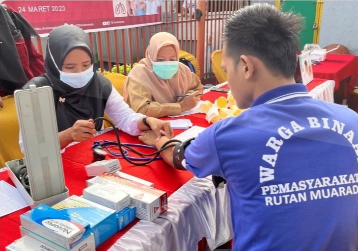 OKU Selatan Sumsel–Tingkatkan pelayanan kesehatan bagi warga binaan pemasyarakatan (WBP) Lapas Kelas IIB Muaradua bekerjasama dengan puskemas Muaradua buka layanan kesehatan berupa skrining TB dan HIV.