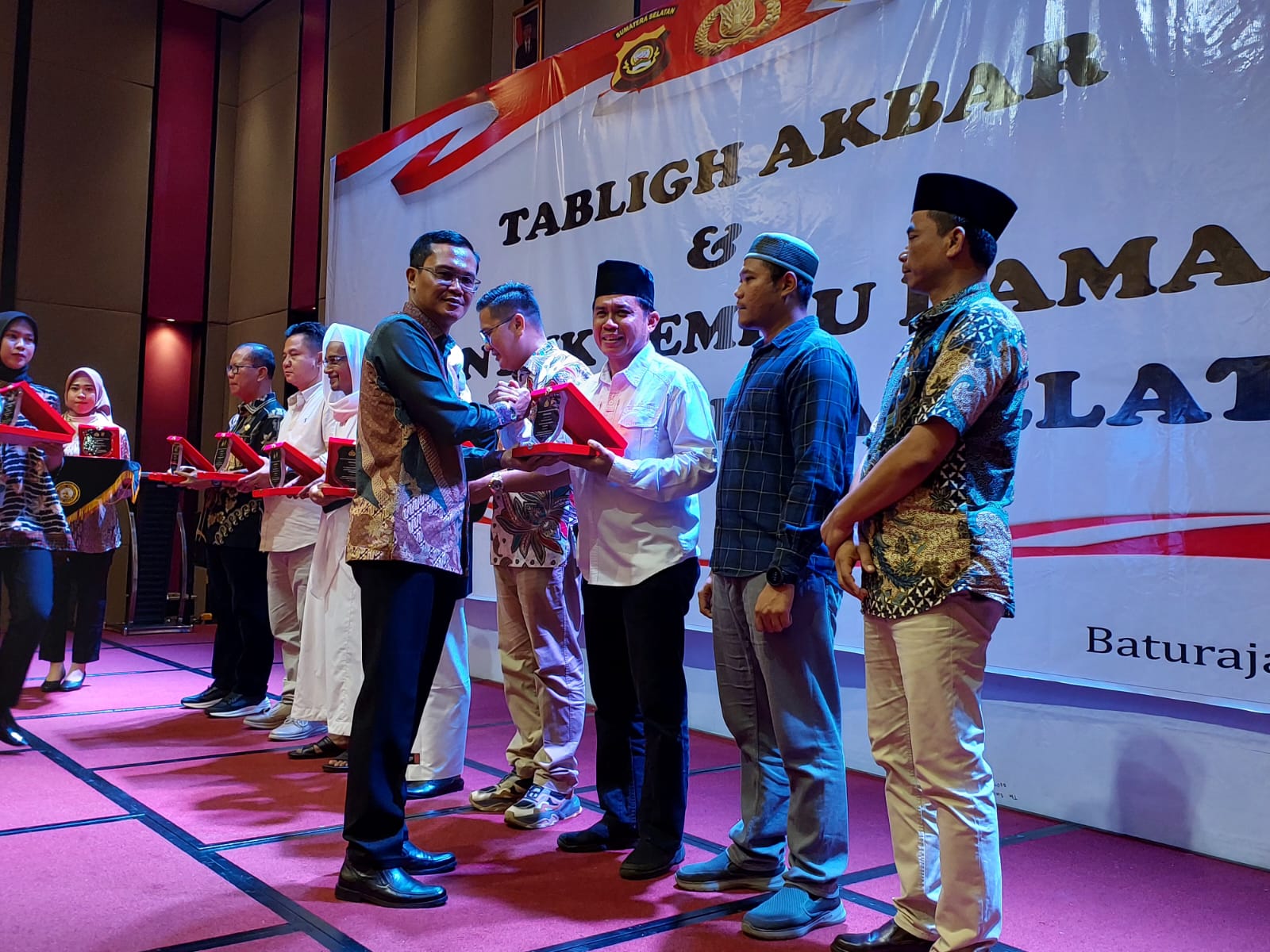 Tabligh Akbar ini tambah Kasat, diisi dengan berbagai kegiatan seperti deklarasi Pemilu damai yang dibacakan oleh Sekda OKU, Darmawan Irianto dan diikuti para peserta yang hadir.