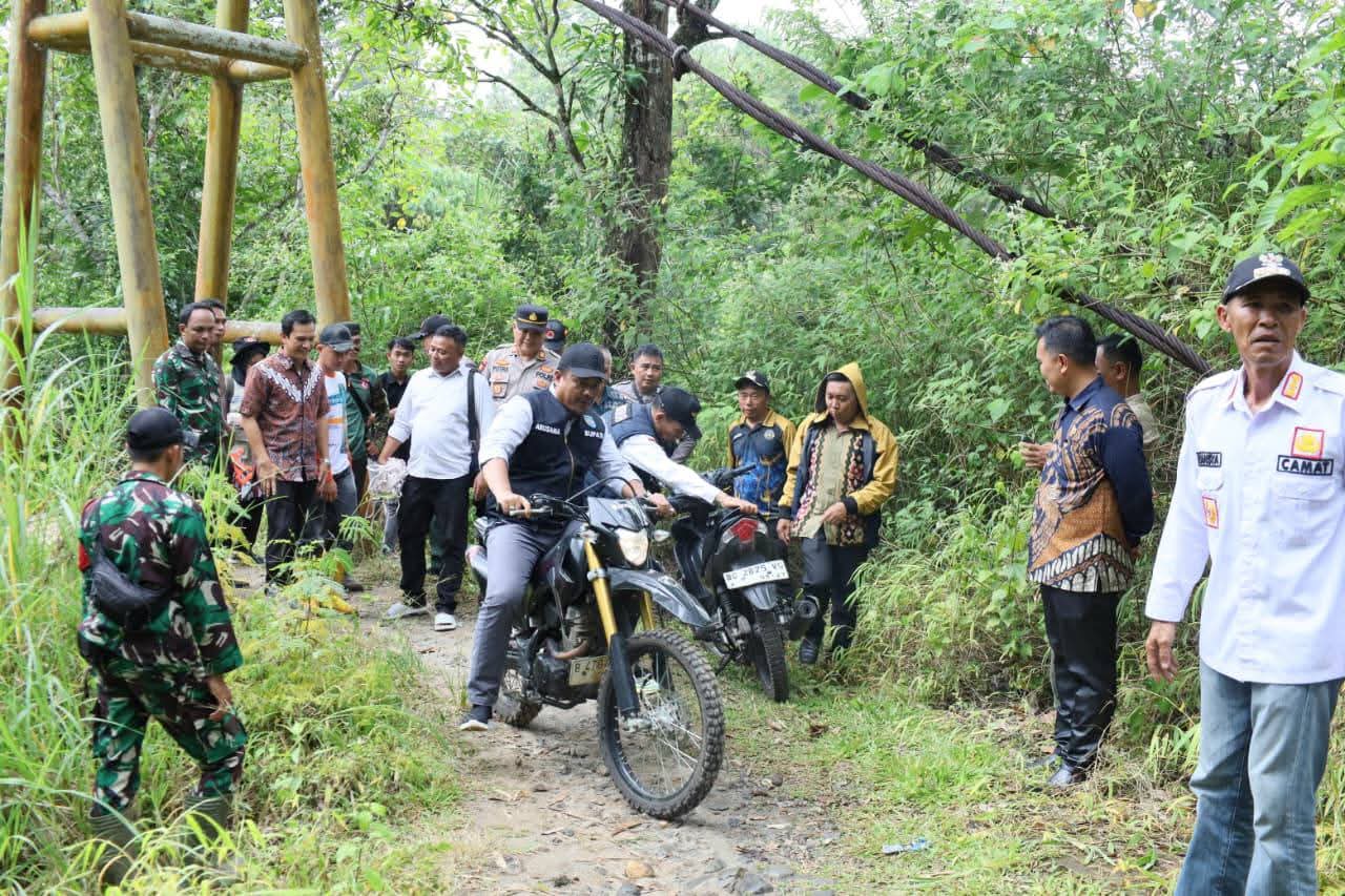 OKU Selatan Sumsel–Tanpa menunda waktu, Bupati OKU Selatan, Abusama turun langsung ke lokasi jembatan gantung yang putus di Kecamatan Kisam Ilir, Kamis (29/01/2026). Langkah ini merupakan respons tegas pemerintah daerah atas insiden yang mengakibatkan sembilan warga luka-luka pada Rabu malam sebelumnya.