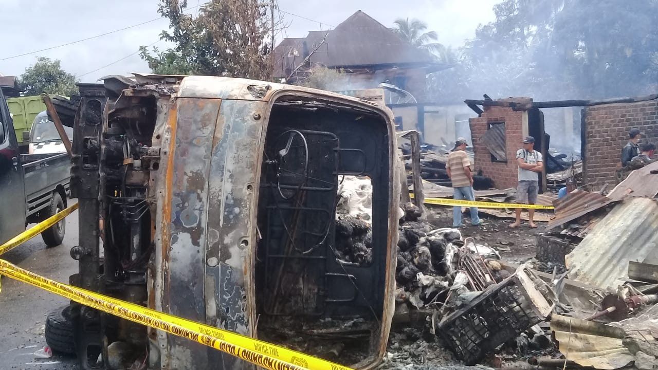 Selain memakan dua korban meninggal dunia, kejadian lakalantas itu juga menghanguskan 5 rumah. Yakni rumah milik Juliansyah, Dansi, Inta, Nur Pawalin, Najamudin. Sedangkan rumah milik Rukiah dan Rano mengalami kerusakan. Dari jumlah rumah tersebut didiami 9 KK dengan 27 jiwa.