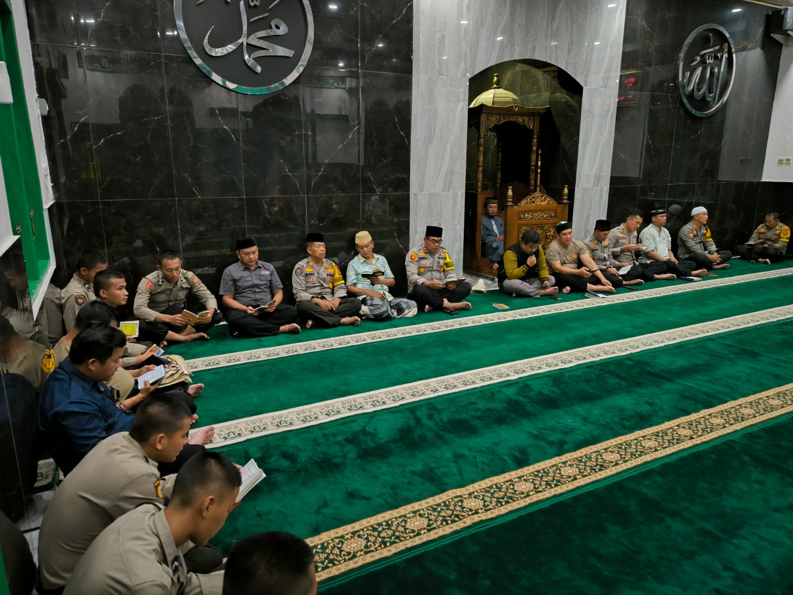 OKU Selatan Sumsel–Dalam rangka menyambut tahun baru 2024, Kepolisian Resor OKU Selatan menggelar zikir dan doa bersama di Masjid Al-Muhlisin Al-Amin yang terletak di kompleks Mako Polres OKU Selatan. Minggu (31/12/2023) malam.