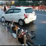 Detak-Palembang.com PALEMBANG – Kecelakaan beruntung terjadi akibat kendaraan roda empat hingga membuat kendaraan roda dua ikut menjadi korban di atas jembatan Ampera