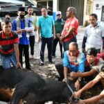 LAHAT, siberindo.co Bupati Lahat, Cik Ujang, SH menyerahkan seekor hewan qurban kepada Panitia Penyembelihan dan Pembagian Daging di belakang Mess Pemkab Lahat,