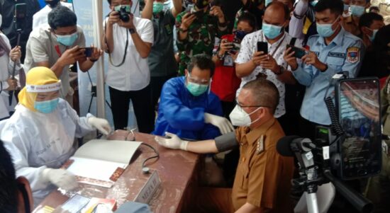 Siberindo.co PAGARALAM | Pastikan vaksin covid 19 aman, Walikota Pagaralam Alpian Maskoni, menjadi orang pertama yang mendapat vaksin. Kegiatan vaksinasi serentak di